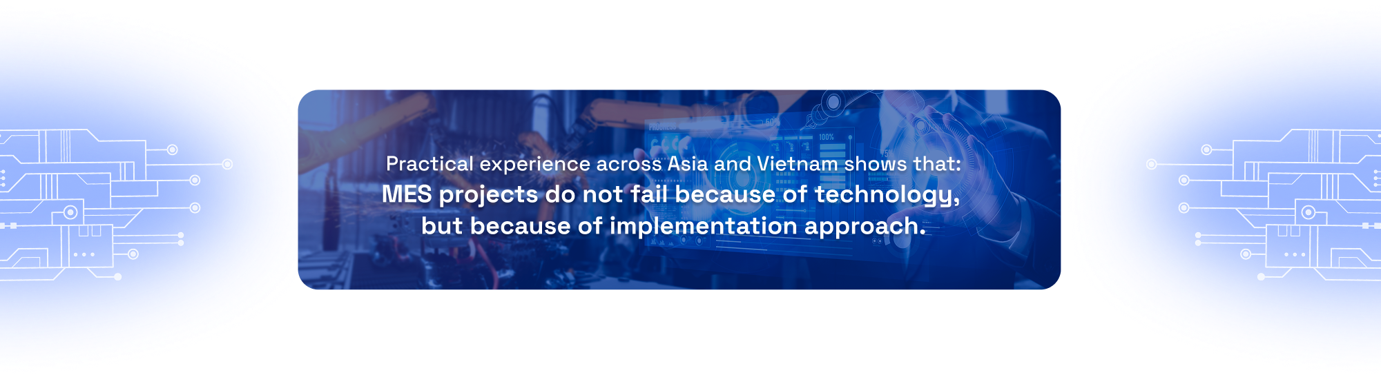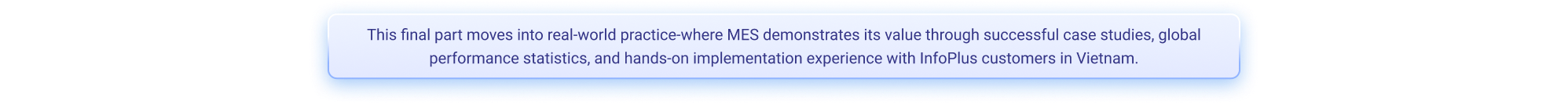Before adopting MES, many Vietnamese manufacturers still operated under a “traditional workshop” model: manual data entry, delayed reporting, and siloed systems across departments.