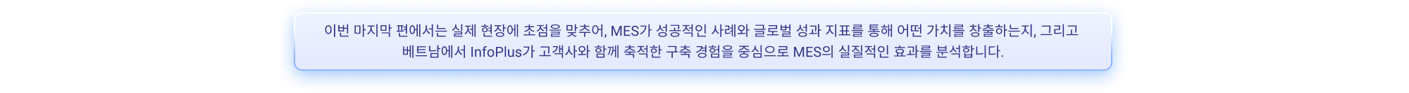 InfoPlus가 수행한 MES 프로젝트와 시장 경험을 바탕으로, 세 가지 핵심 교훈을 도출할 수 있습니다.
